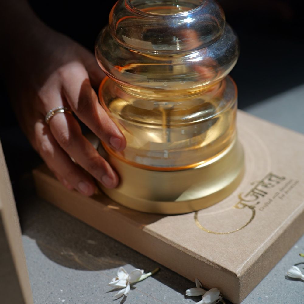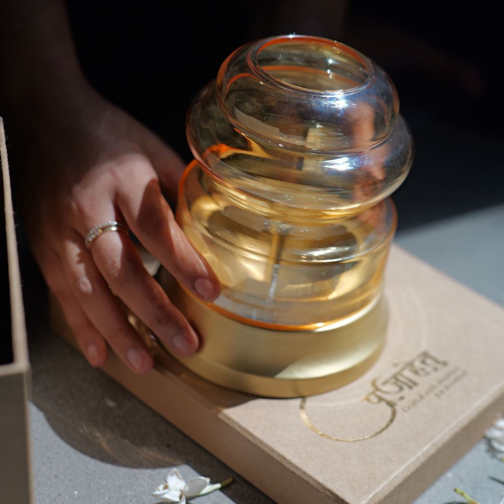 The glass top stays cool to the touch, even after prolonged use, ensuring safety and ease during handling. Whether lit at dawn or allowed to glow through the night, the Akhand Diya offers a clean, unwavering flame that becomes part of your everyday ritual.