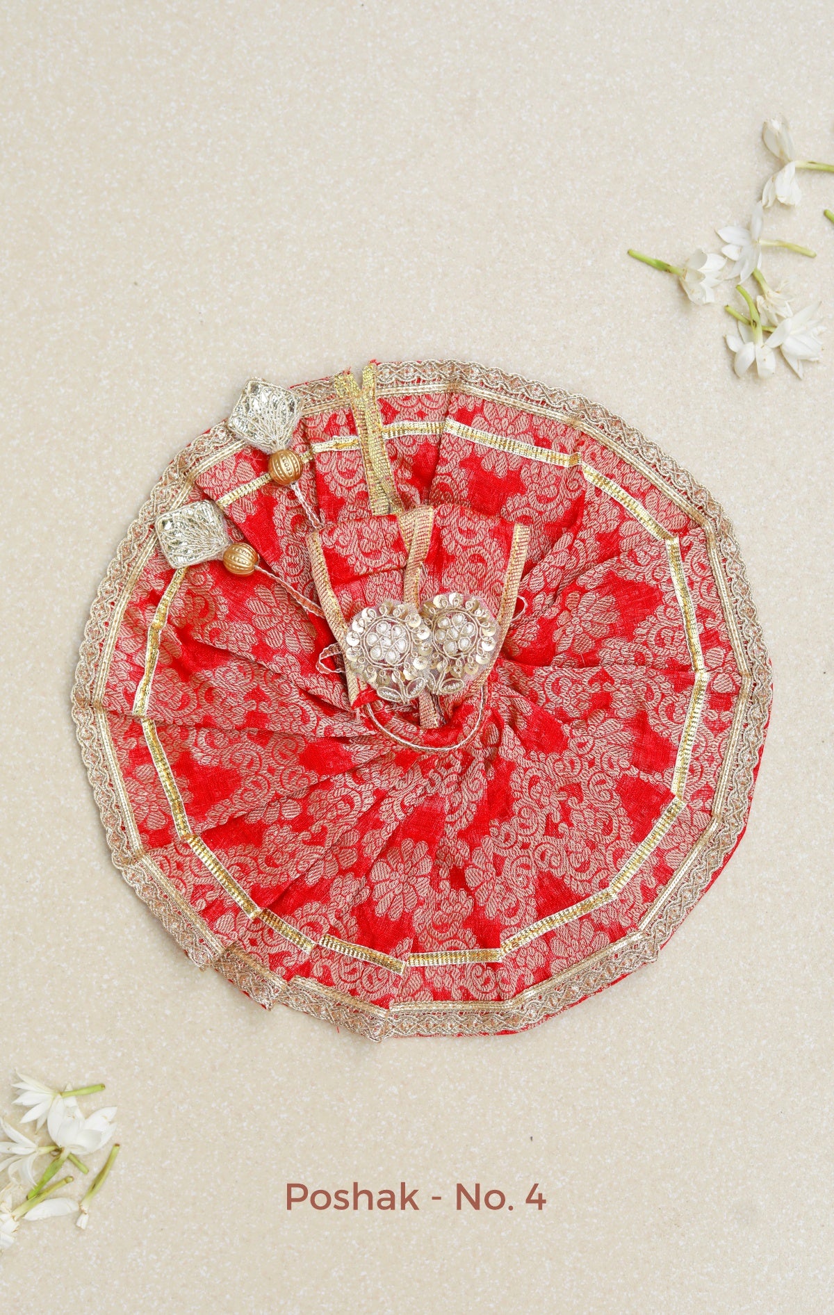 The Divine Drapes Poshak is a beautifully crafted, customizable garment collection designed to adorn your idols with elegance and reverence. Available in two distinct options—Laddoo Gopal Poshak and a universal design suitable for all deities—these poshaks are tailored with precision to enhance the divine presence of your idols. Whether you have a small idol or a larger deity, we offer customized sizing to ensure a perfect fit. Simply share your idol’s dimensions, and we will craft a poshak that fits like a divine embrace. Ideal for enhancing your puja space, these poshaks also make a thoughtful and meaningful gift for spiritual devotees. Elevate the beauty of your sacred idols with the Divine Drapes Poshak.